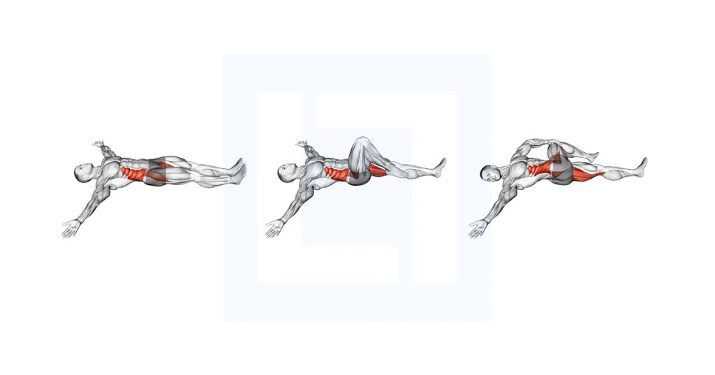 - Supine Twist Supine Twist (1 min, 30 seconds each side)